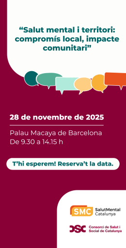 Ja estan obertes les inscripcions per assistir a la jornada "Salut mental i territori: compromís local, impacte comunitari", organitzada pel CSC i Salut Mental Catalunya, que tindrà lloc el 28 de novembre, a les 9.30 h, al Palau Macaya de Barcelona.